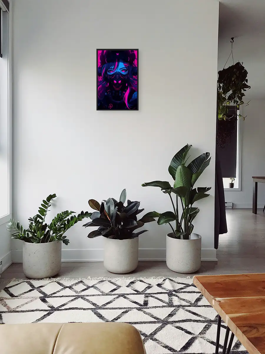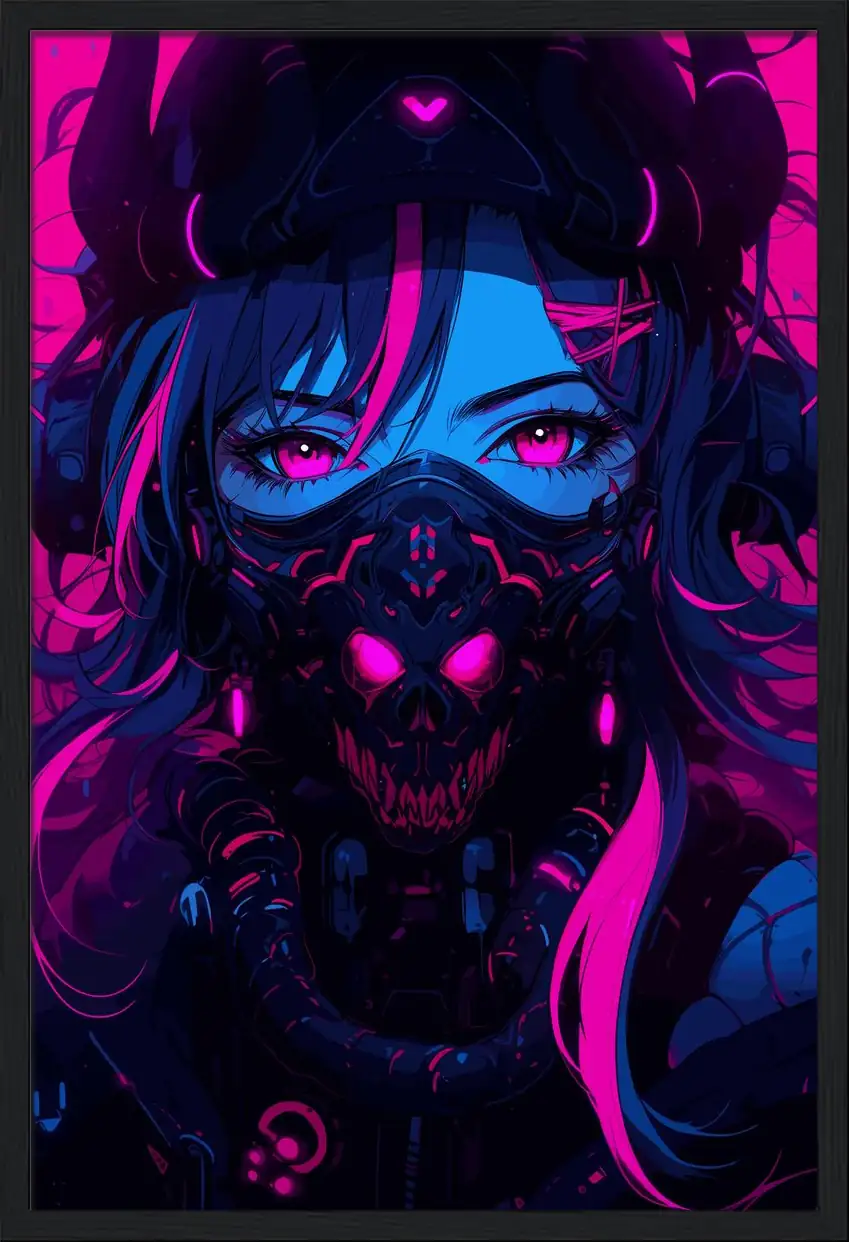 Dive into a world of vibrant neon and dark fantasy with this captivating artwork. Experience the energy and mystique of a cyberpunk warrior, perfect for adding a touch of rebellious style to your space.